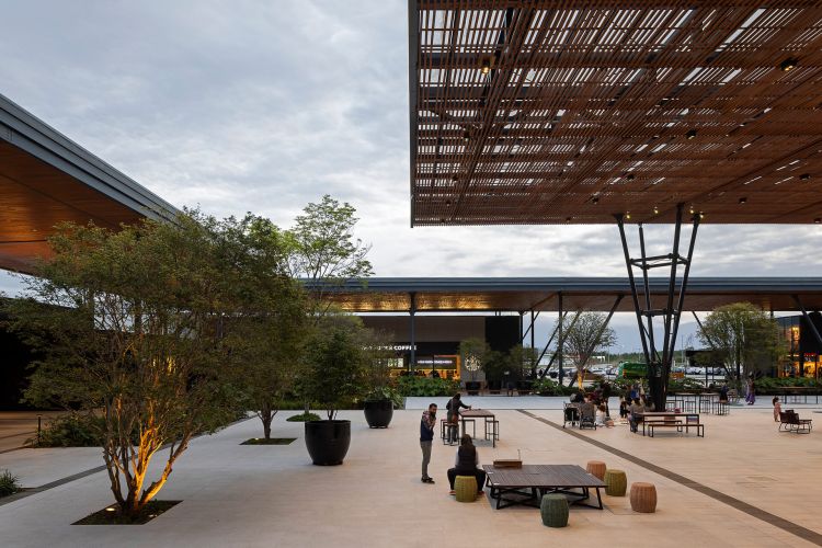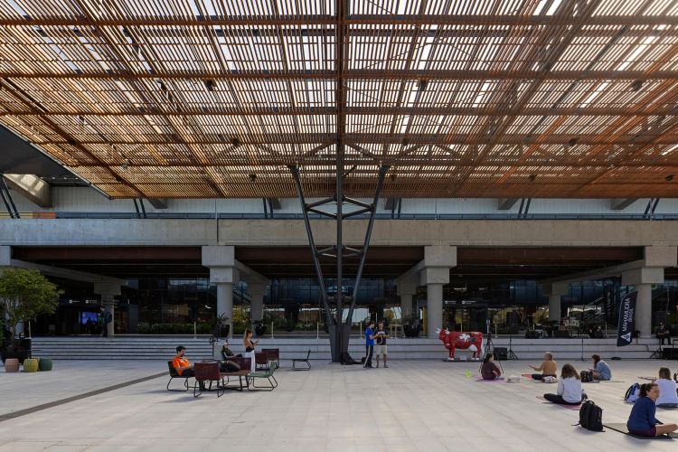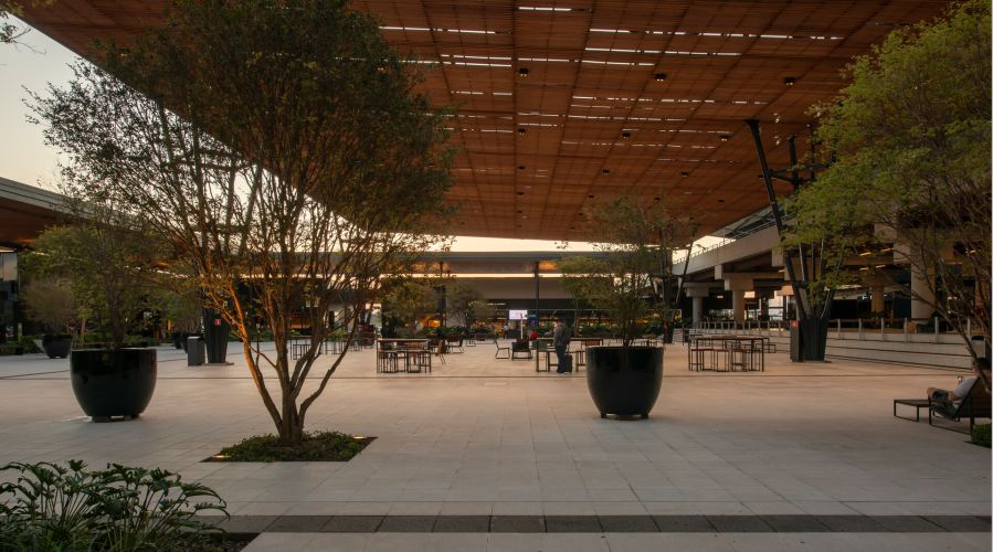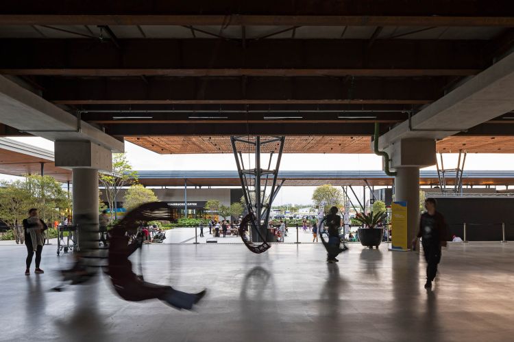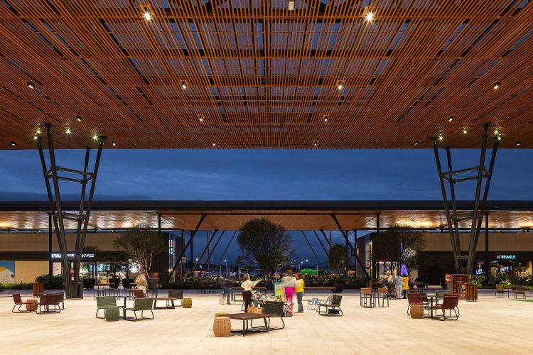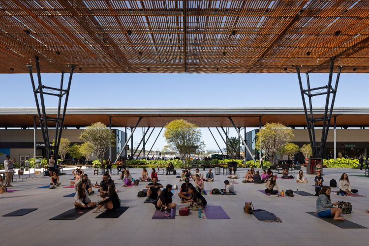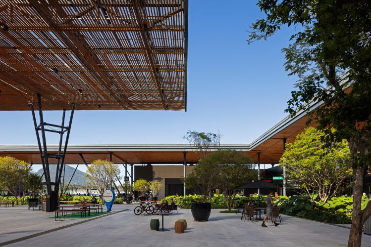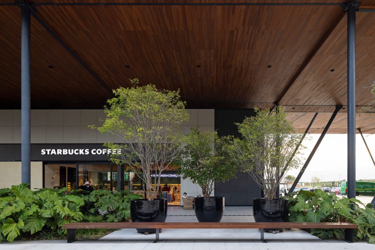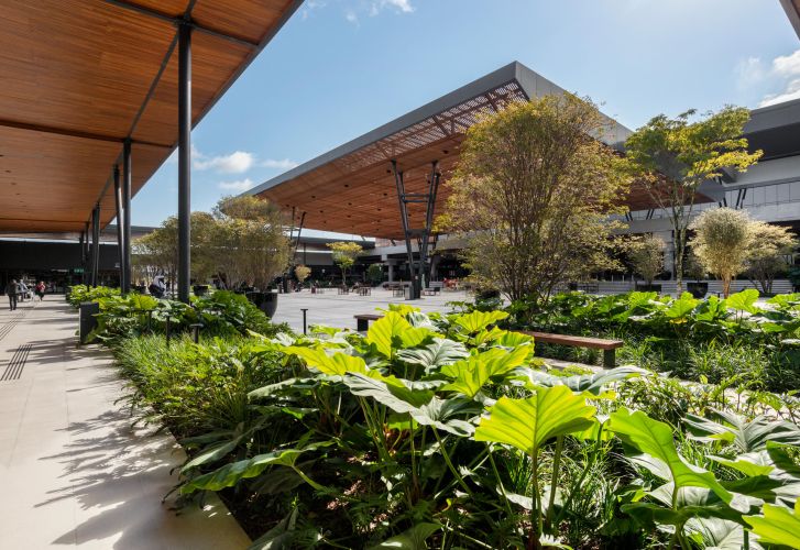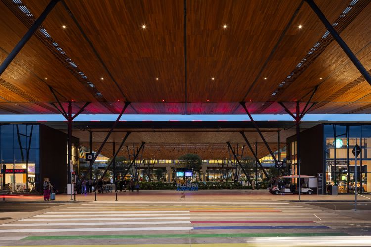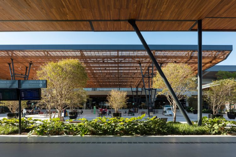 Esses elementos aproximam o edifício da identidade praiana de Florianópolis. Acreditamos que a arquitetura precisa atender às demandas funcionais rigorosas de um ambiente de aeroporto, mas também deve pensar no cotidiano, nos momentos simples que contribuem para o bem-estar. Queríamos criar um espaço que acolhesse as pessoas, oferecendo escolhas e trazendo gentileza ao ambiente.