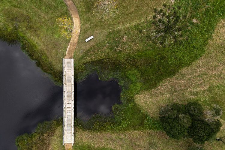 Em cada parte do projeto, ocupamos as áreas com a ideia de criar espaço, valorizando o vazio e o ar que circula no local. A Fazenda Terramilia é um lugar onde respirar fundo é uma bênção; o ar extremamente puro carrega o cheiro da natureza. É um espaço para sentir, ouvir, ver, tocar e saborear a paisagem. Cada escolha foi feita para impulsionar experiências sensoriais que, neste contexto, são de uma amplitude incomparável.