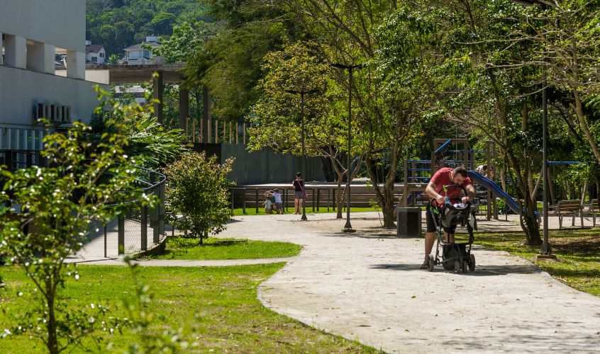 O Parque Linear do Córrego Grande integra natureza e urbanismo com estruturas de baixo impacto, trilhas e ciclovias.