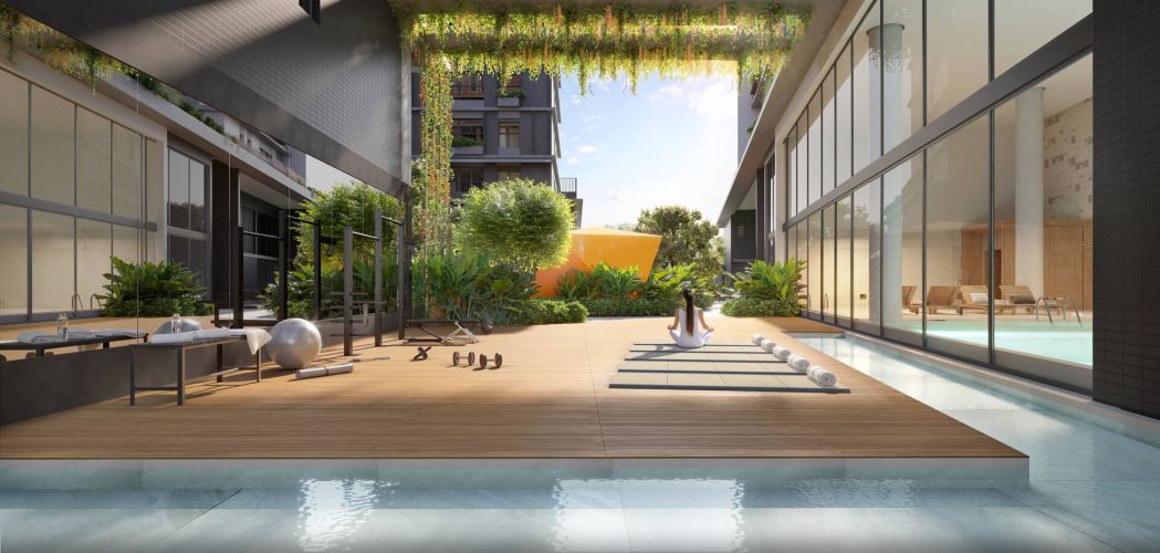 Pátio das Artes é um empreendimento de uso misto com térreo comercial e torres residenciais.