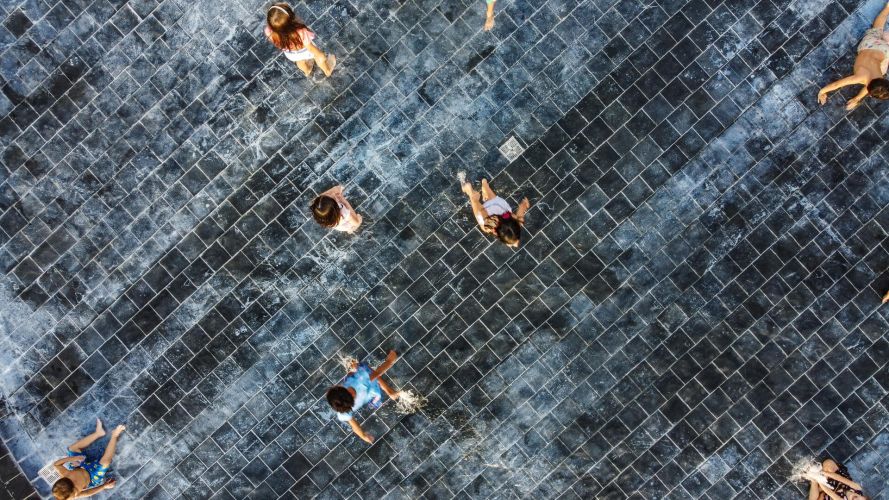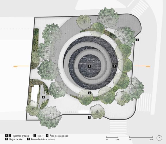 Em vez de criar um objeto volumétrico que se projetasse do solo, a proposta foi escavar para revelar o elemento água.
